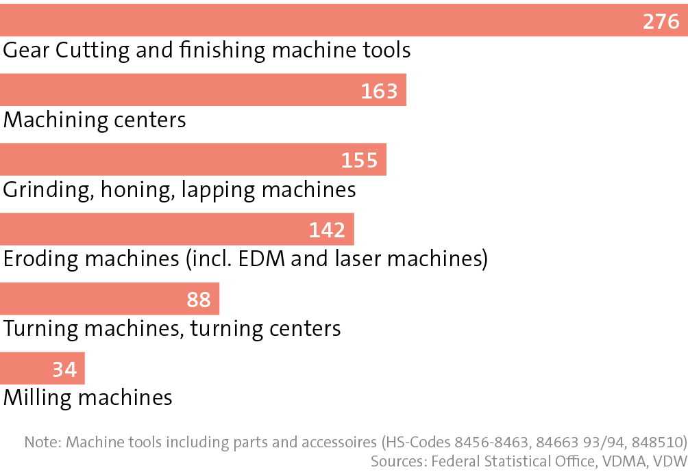 German machine tool exports to China by machine type 2025