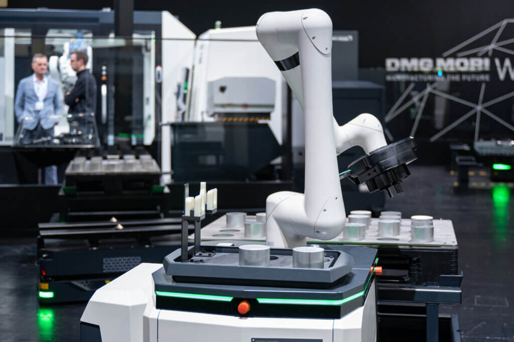 DMG Mori (Bielefeld, Germany) placed the technical focus firmly on automation and process integration at EMO 2025. 33 of the more than 40 machines on display were automated. A particular highlight here was the new AMR 1000. This is a driverless transport system for workpieces and tools that significantly increases machine capacity through continuous autonomous operation.